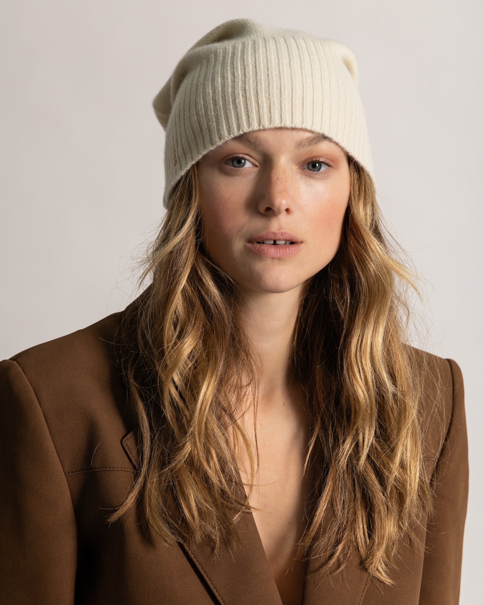 Bonnet XL Koon x Blush écru 100% cachemire