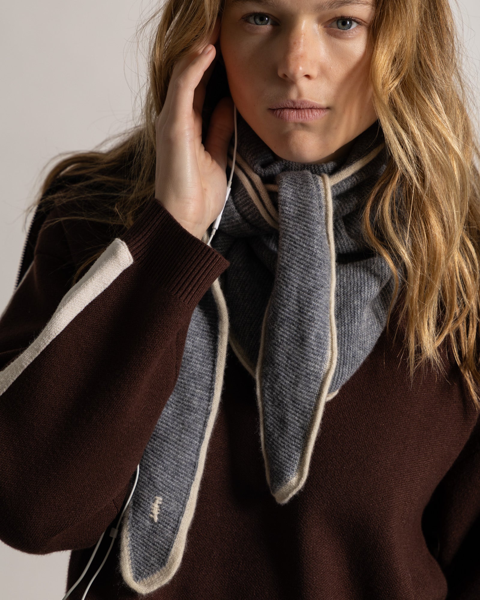 100% cashmere beige mini scarf